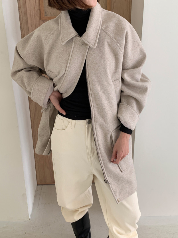라이크울코트야상(겨울신상 카라 포켓 미들 모던 와이드 페미닌)
