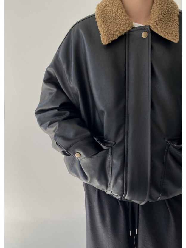 양털레더점퍼(무스탕 가죽 오버핏 집업 밴딩 아우터 카라)